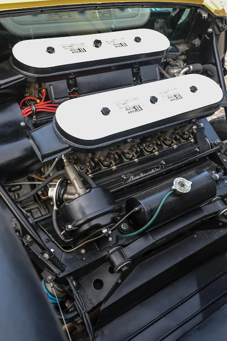 ![]() | This 1971 P400 SV Speciale crossed the block at Gooding & Company’s Passion of a Lifetime auction in 2021. It is one of only 150 P400 SVs ever produced, and one of 764 Miuras in total. But this is also a speciale with extras like dry sump lubrication and a ZF limited-slip differential. The bespoke Miura was finished in Oro Metallizzato. (metallic gold) |
