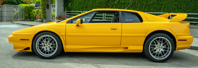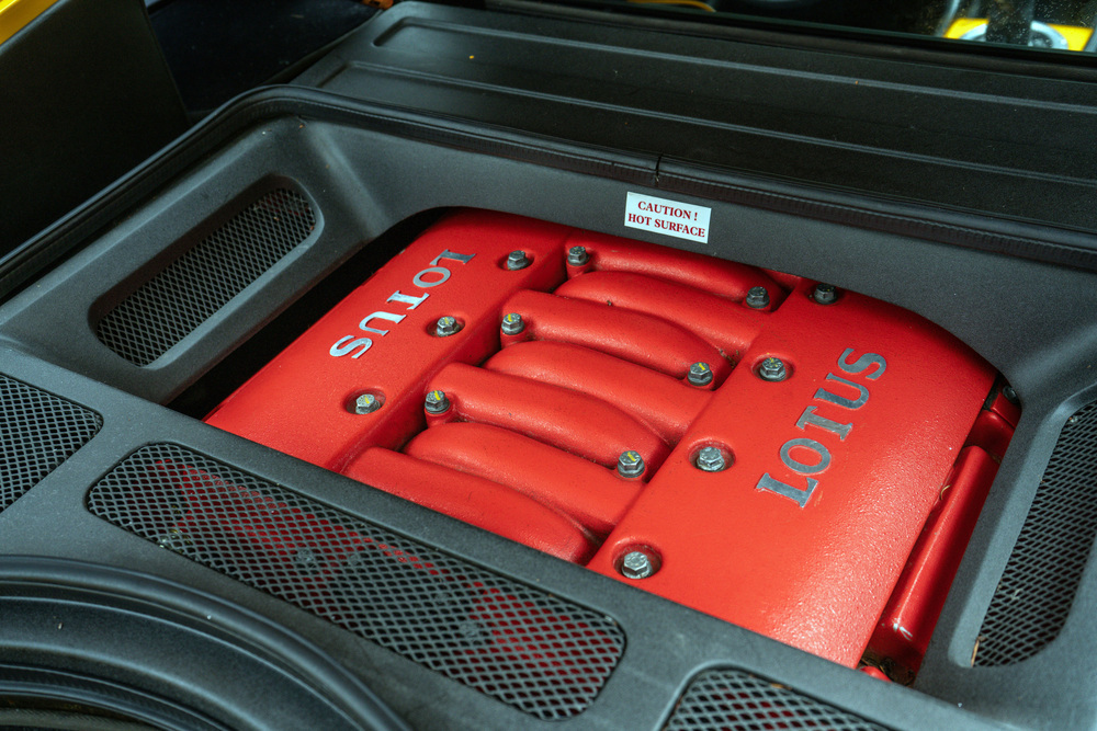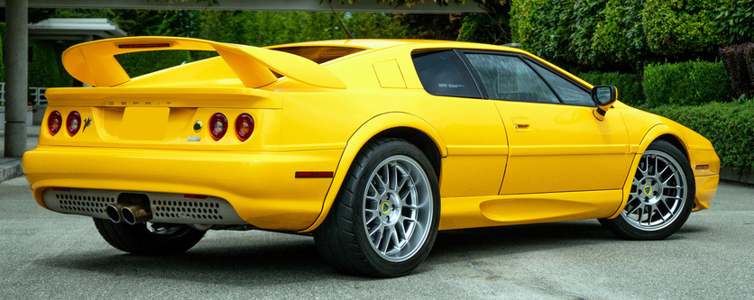 ![]() | This 2002 Lotus Esprit coupe is finished in Solar Yellow Metallic with black leather interior. It’s powered by a 3.6-liter V8 twin-turbo engine producing 355hp through a 5-speed manual transmission. 0-60 mph comes in 4.8 seconds and 0-100 mph in 10.5 seconds with a top speed of 175 mph. It features 17" front and 18" rear alloy wheels wrapped in Nitto tires, a theft deterrent system, Alpine audio system with CD player, climate control, and Wilwood brakes. 26,040 actual miles |