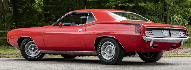 ![]() | 1 of 284 4-speed Hemi Cudas produced in 1970, 666 overall. Two year concours restoration completed in 1989. 1,032 miles since completion. 425 HP and 490 ft/lbs of torque. Dual Carter AFB carburetors. Rallye Red with Black Hockey Stick stripes. Super Track Pack. Power brakes. Shaker hood. Black bucket seat interior. Center console. |