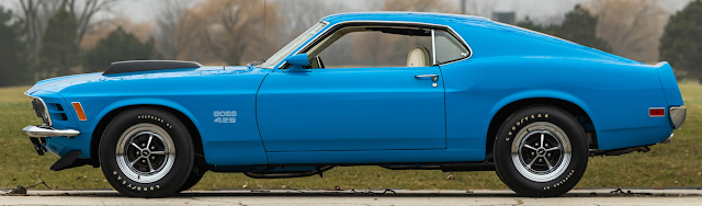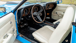 ![]() | Top lot thus far at Kissimmee is this concours quality 1970 Boss 429. Kar Kraft No. 2346. Restoration by Mustang expert Kevin Manley, resulting in MCA Concours Gold level condition. 1 of 499 built. Grabber Blue exterior. White and black interior with Hurst shifter. Close-ratio 4-speed transmission. 3.91 Traction-Lok rear end. Nothing compares to Ford’s mighty Boss 429 Mustang. Created and released for one purpose – to homologate Ford’s hot new hemi-head Boss 429 engine for NASCAR Grand National competition. |