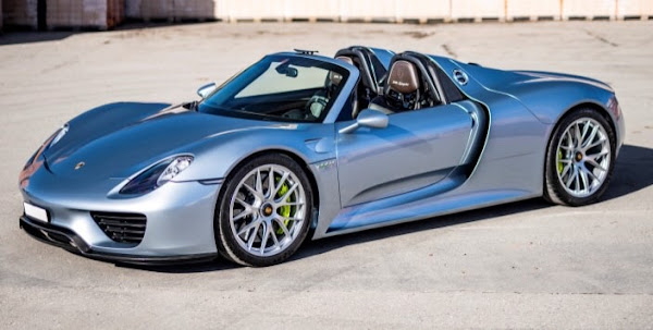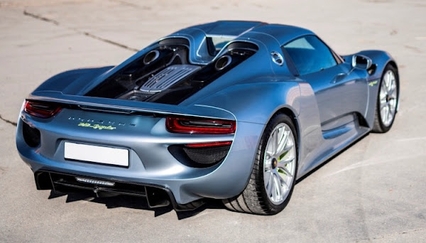![]() | The Porsche 918s unique Liquid Chrome Blue Metallic finish helped it achieve CHF1,001,000. The Porsche 918 Spyder is a limited-production mid-engine plug-in hybrid. The 918 Spyder is powered by a naturally aspirated 4.6 L (4,593 cc) V8 engine, developing 599 hp at 8,700 rpm, with two electric motors delivering an additional 282 hp. |